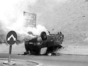 Furgón se volcó en la rotonda El Pampino y ocupantes huyeron