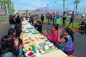 Estudiantes de la Unap protestan almorzando en la avenida Prat