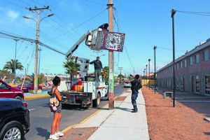 Retiran cables en desuso en postes de alumbrado público