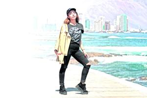 Un estilo rockero totally black es lo que lleva Rocío por Iquique