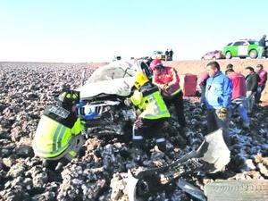 Cinco lesionados tras vuelco de auto en ruta 5