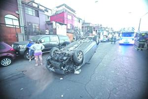 Chofer volcó tras chocar con auto estacionado