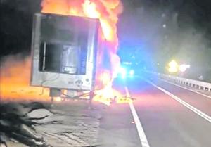 Bomberos combate fuego en camión en la ruta 5 Norte