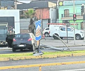 Vehículo impacta y derriba un poste en la avenida Arturo Prat de Iquique